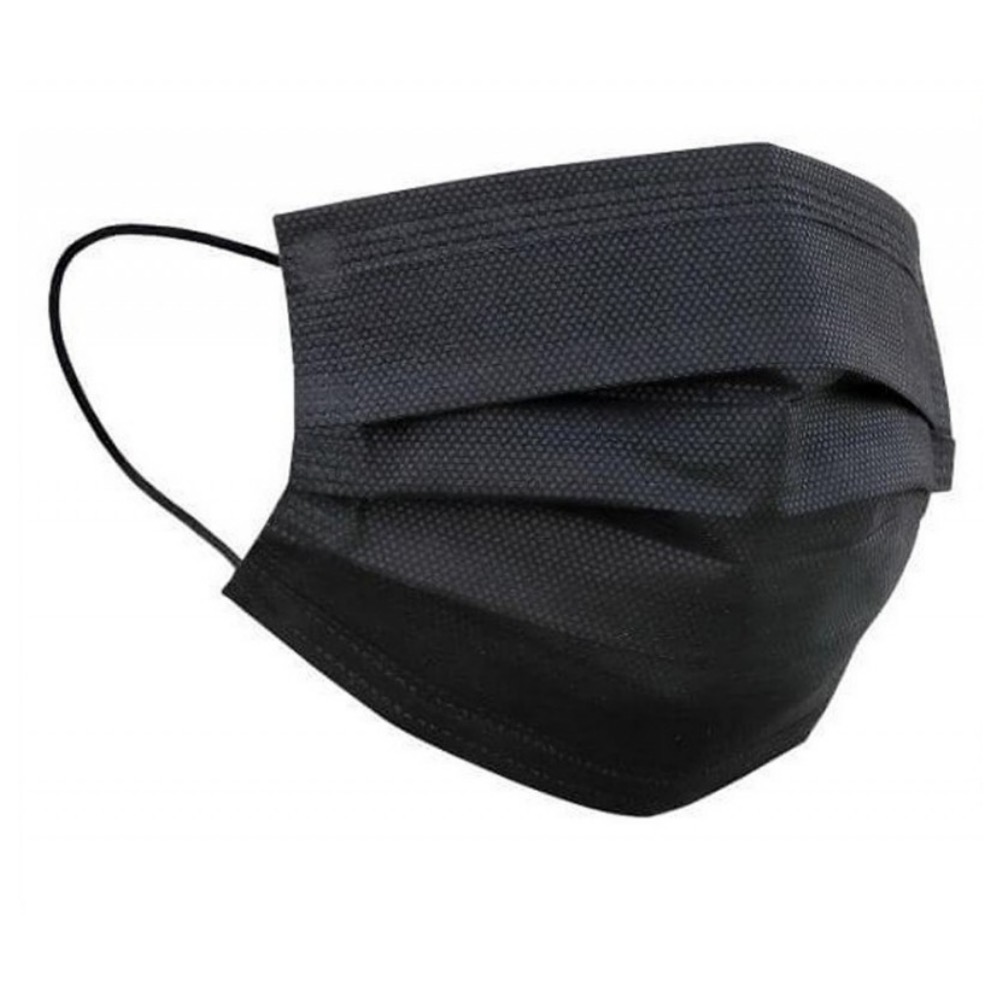 Mascarilla quirúrgica de tres pliegos, no esteril, color negro, de tela no tejida, resistente al agua y con eficiencia de filtración bacteriana (BFE) mayor o igual al 95%.