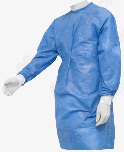 Bata desechable, tipo gabacha, talla M, color celeste, no esteril, para uso clínico.